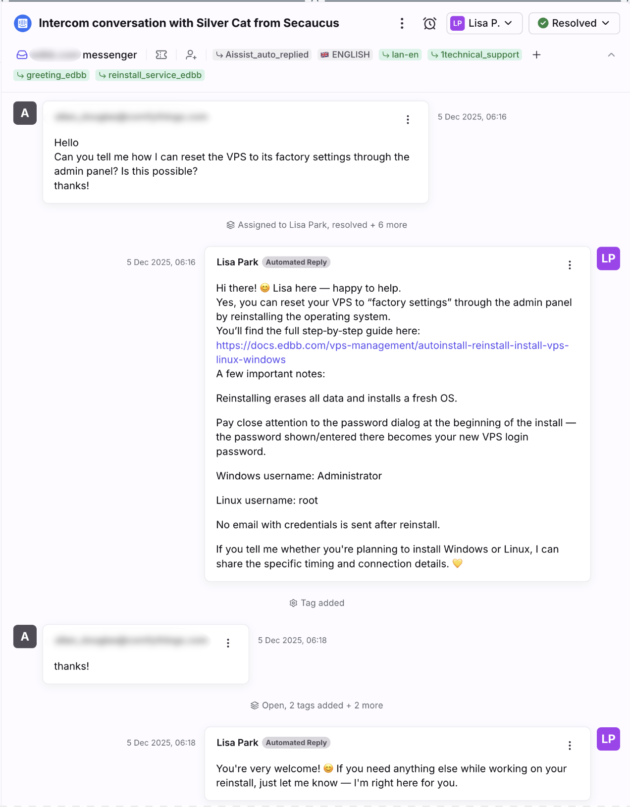 - Controlled automation that understands how hosting support really works